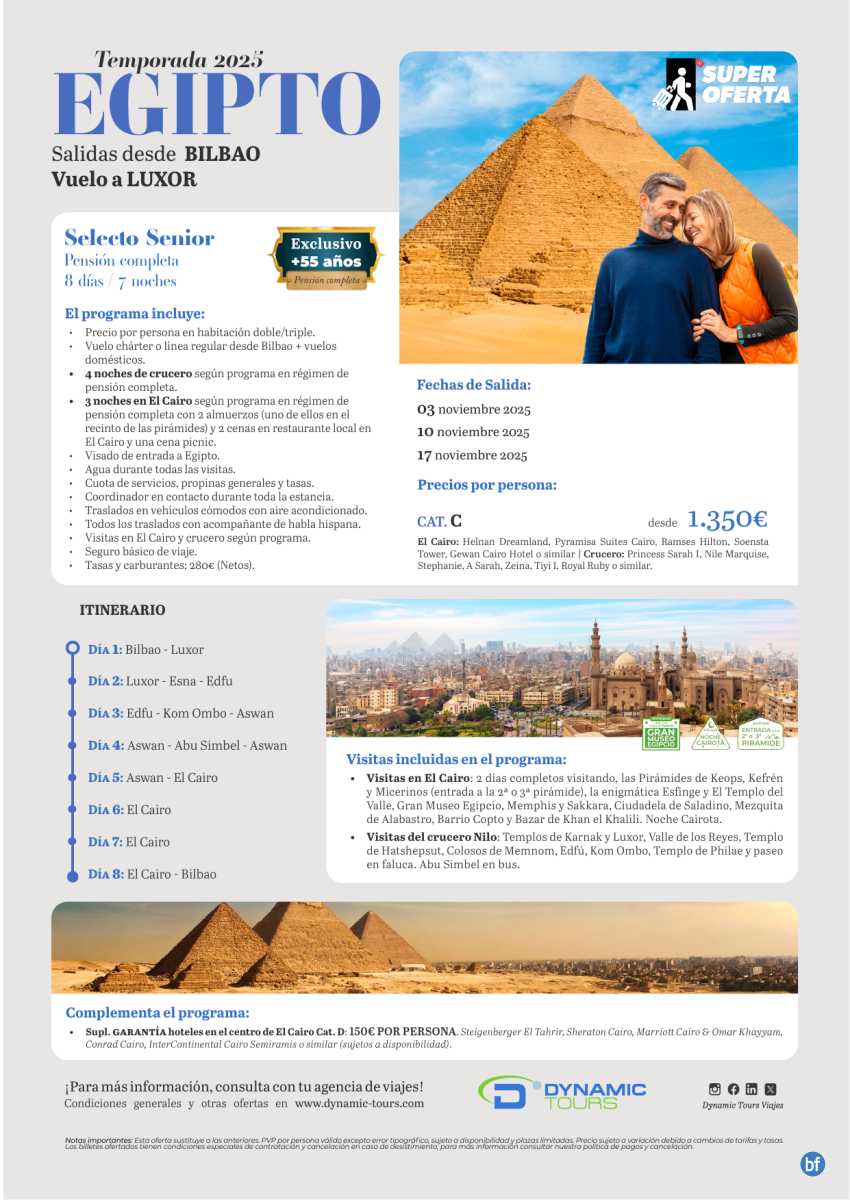 EGIPTO【Selecto Senior】『Super Oferta』✈ desde Bilbao (Pensión completa)┃desde 1.350€