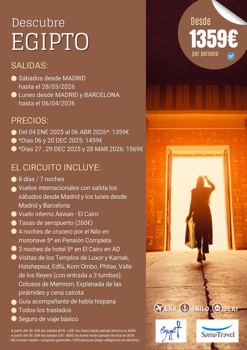 Descubre EGIPTO"8 días Crucero +Cairo +visitas [Chárter a Luxor desde Mad y Bcn](ene25-6abr26)*Desde 1359€*