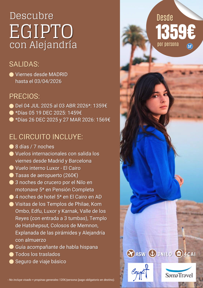 "Descubre EGIPTO + Alejandría" 8 días circuito [Desde Madrid] (04Jul-03abr26) *Desde 1359€*
