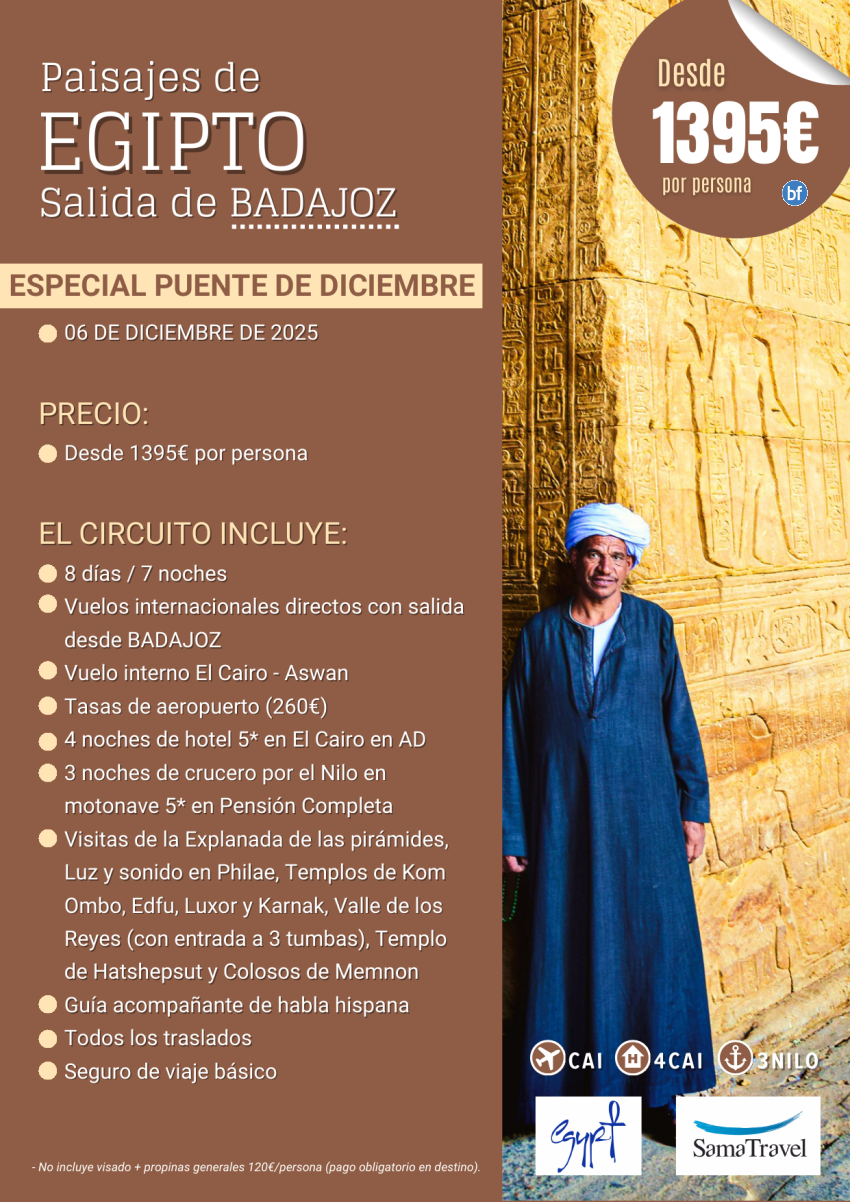 PTE DEC "Paisajes de Egipto": 8 días Cairo +crucero +visitas [desde BJZ a CAI] (6 diciembre) **desde 1.395€**