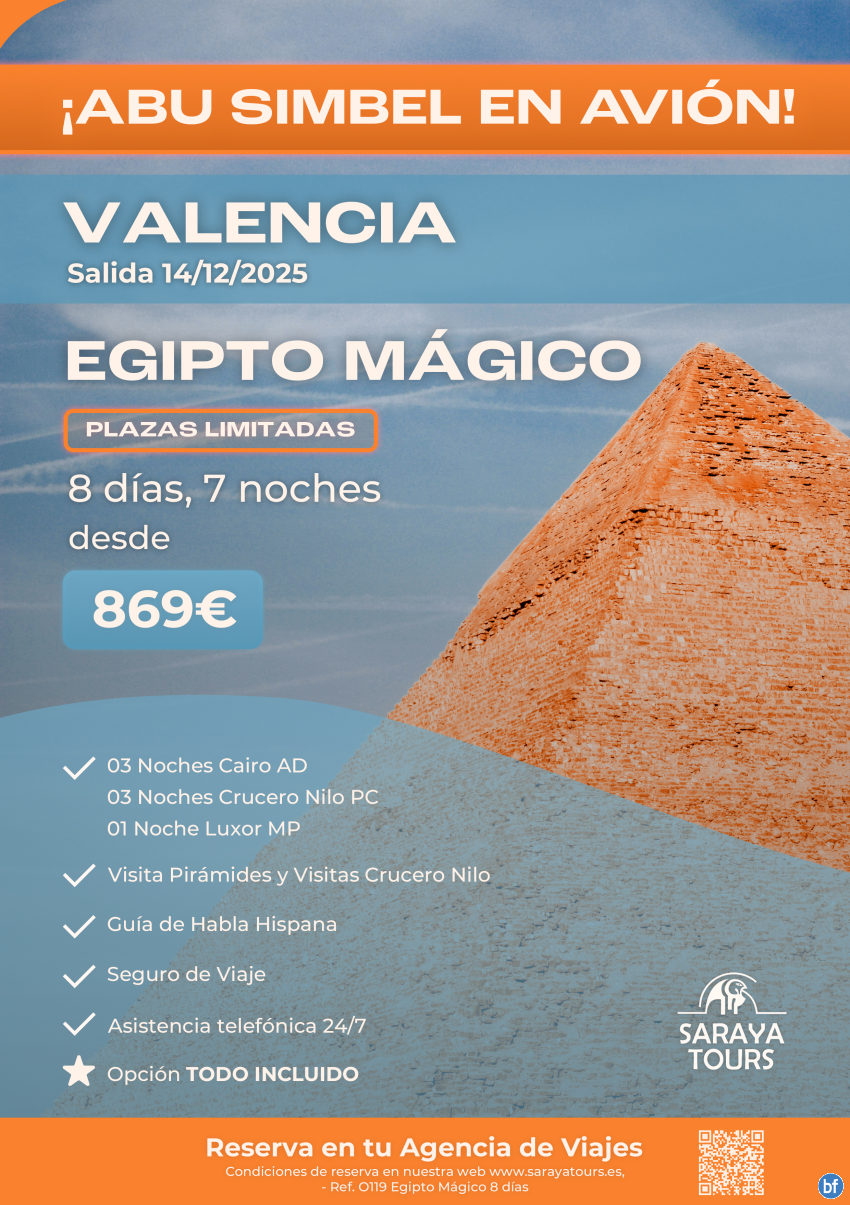 Salida Valencia 14/12/25 ¡Últimas Plazas! Egipto Mágico con Abu Simbel en Avión incluido