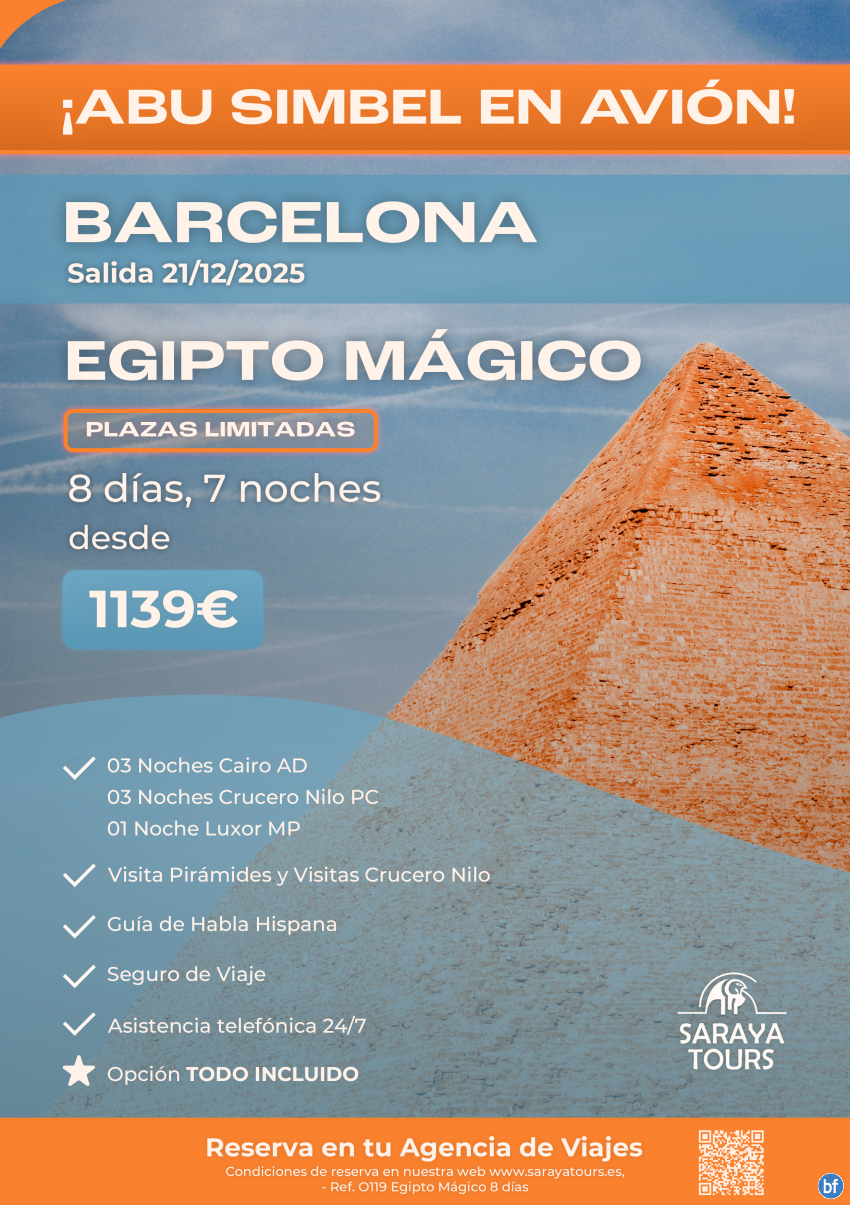 Salida Barcelona 21/12/25 ¡Últimas Plazas! Egipto Mágico con Abu Simbel en Avión incluido