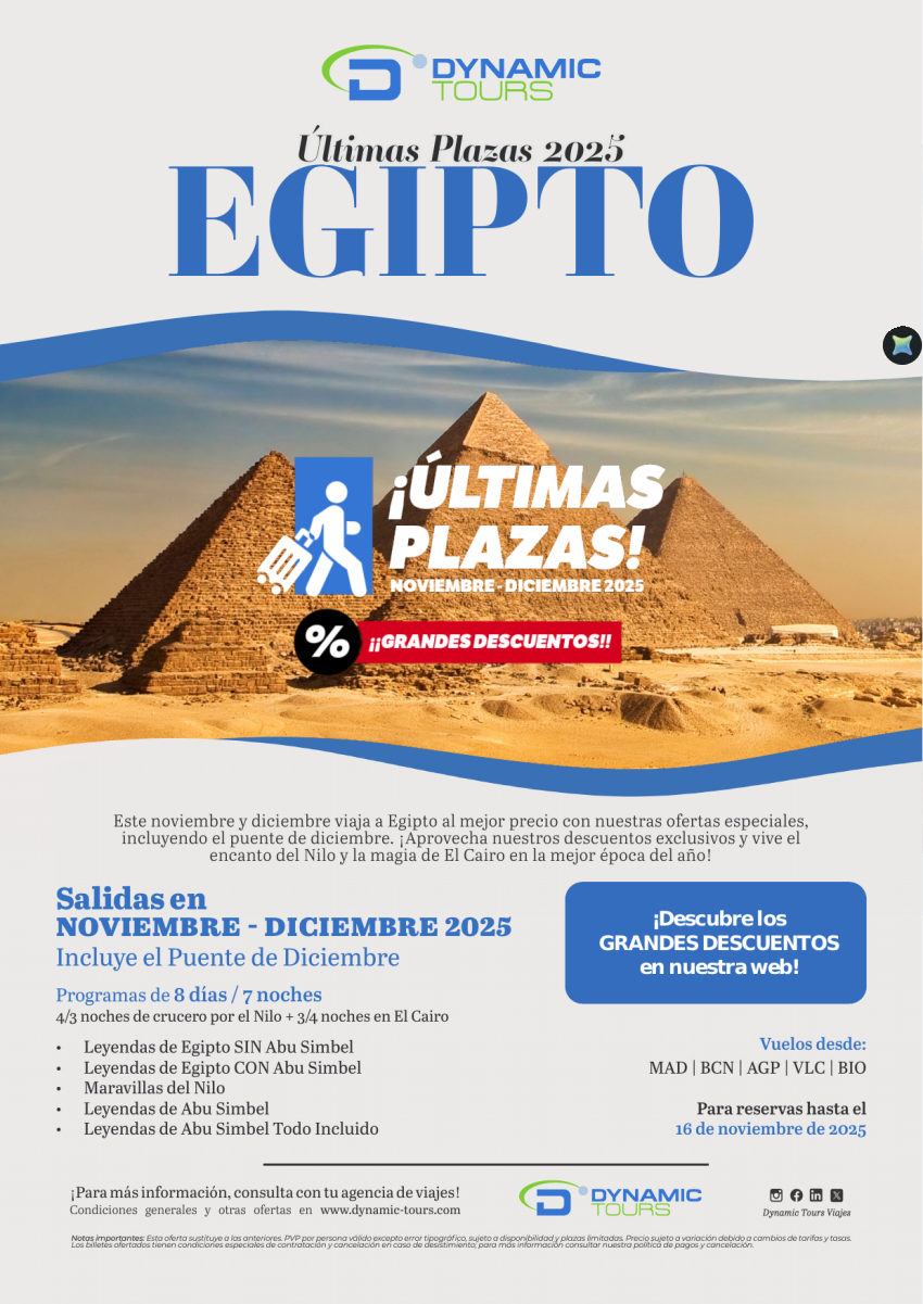 EGIPTO 【Últimas Plazas 2025】「Grandes Descuentos 」Salidas noviembre y diciembre ✈ desde mad, bcn, agp, vlc, bio