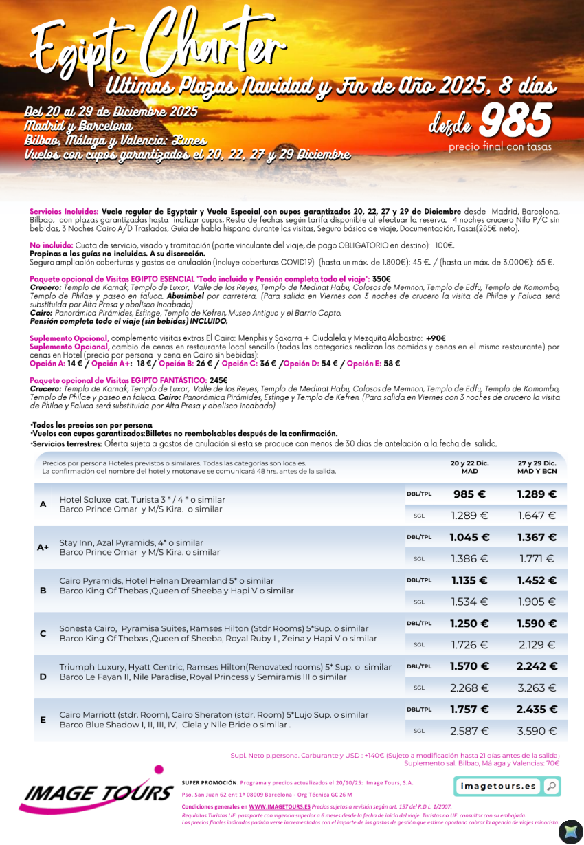 Egipto: Oferta Navidad y Fin de Año 2025, 8 días con plazas garantizadas desde 985€
