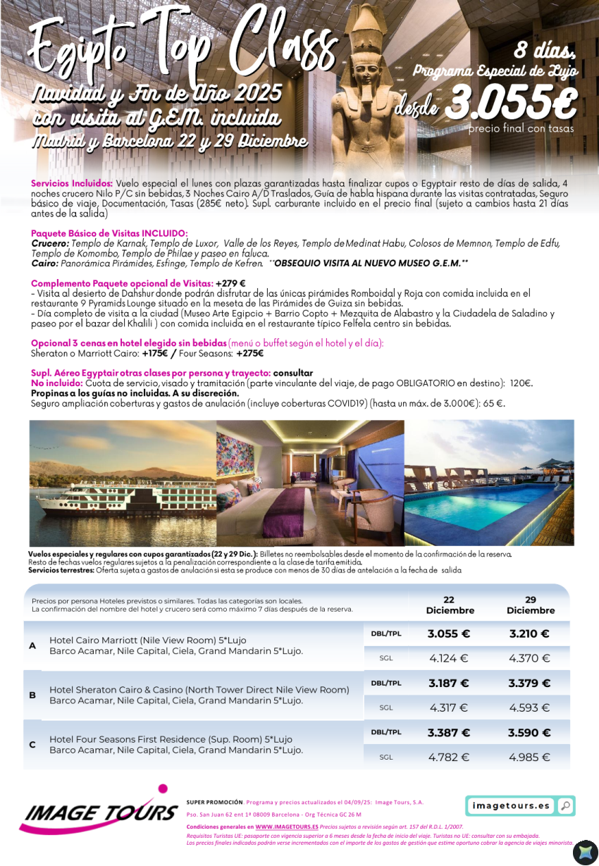 Egipto TopClass Lujo con precios para Navidad y Fin de Año 2025 ¡Incluye visita al GEM! desde 3065€