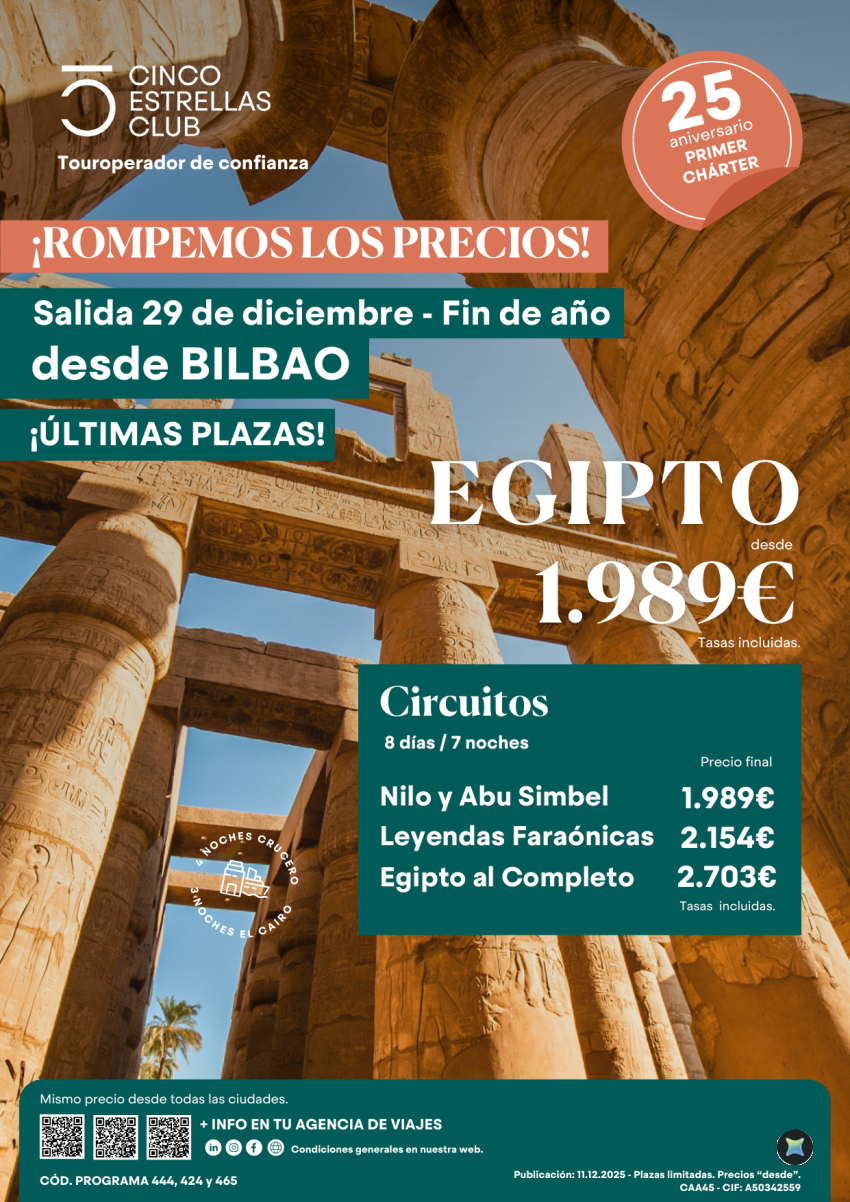 Seguimos rompiendo precios para el 29 de Dic a Egipto (Fin de año) dsd Bilbao!! Últimas plazas dsd 1989€ 8d/7n