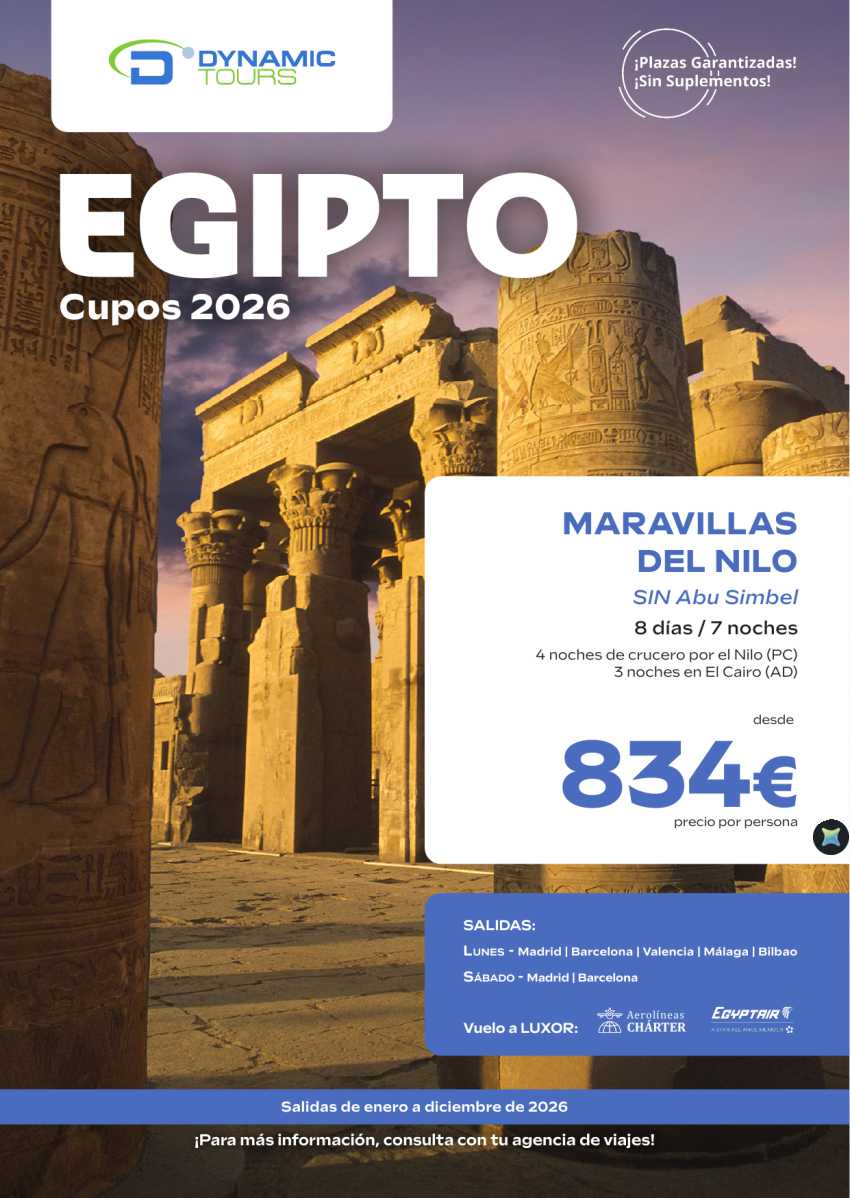 EGIPTO 【Maravillas del Nilo】『4cru+3cai』(✈ Madrid, Barcelona, Valencia, Málaga y Bilbao) desde 834€