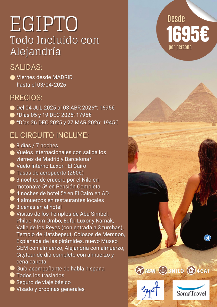 "EGIPTO Todo Incluido + Alejandría" 8 días circuito [Desde Madrid] (04Jul-03Abr26) *Desde 1695€*