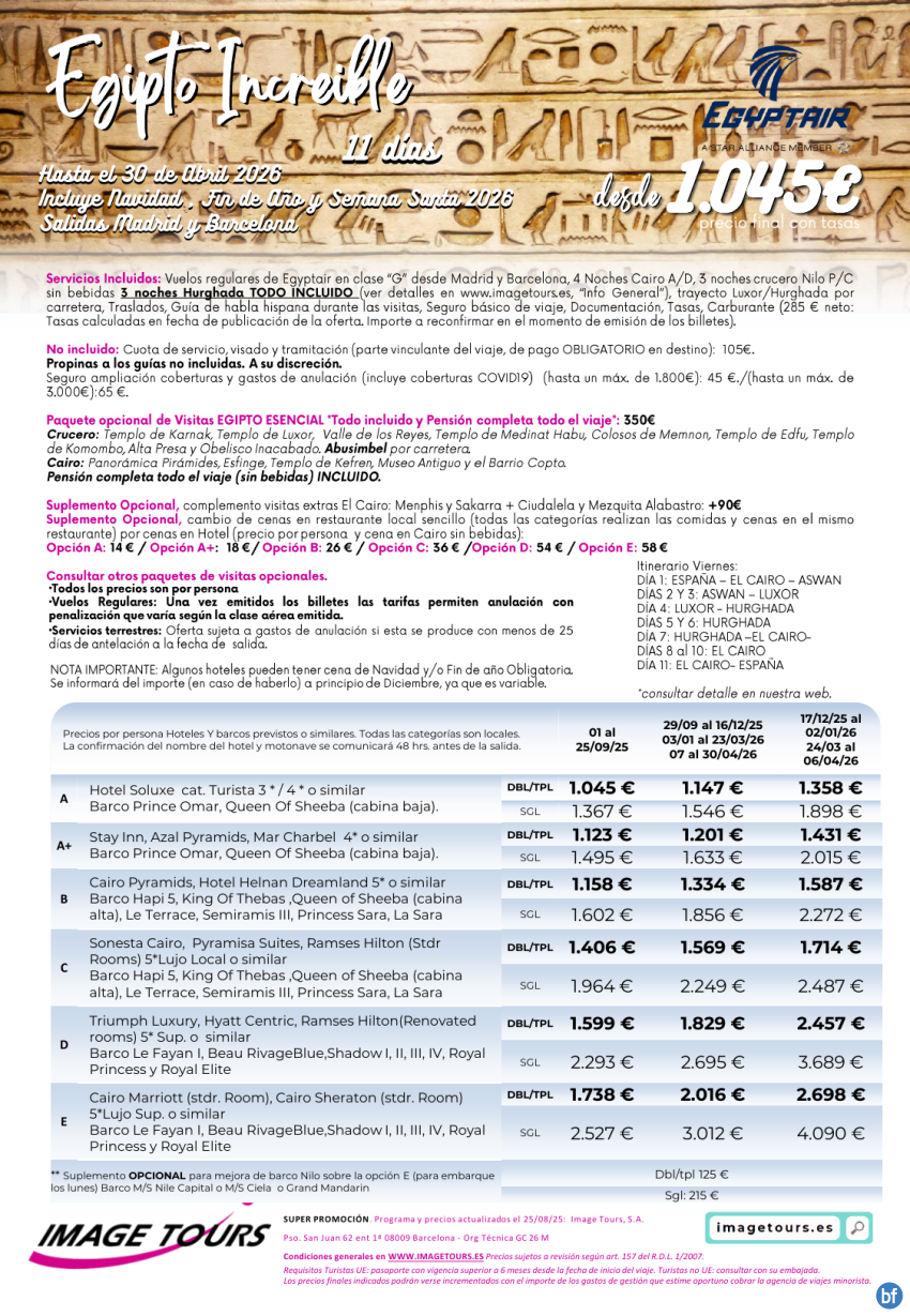 Egipto Increíble hasta abril 2026, 11 días con Cairo AD, Crucero Nilo PC y Hurghada Todo Incluido. Desde 1045€