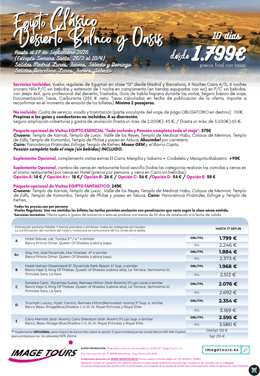 Egipto Clásico, Desierto Blanco y Oasis, 10 días desde 1.799€