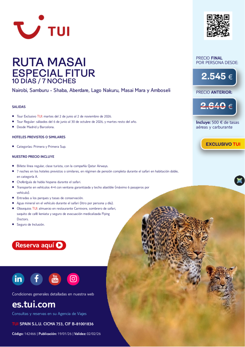 Especial Fitur. Ruta Masai. 10 días / 7 noches. Exclusivo TUI. Salidas desde MAD y BCN desde 2.545 €